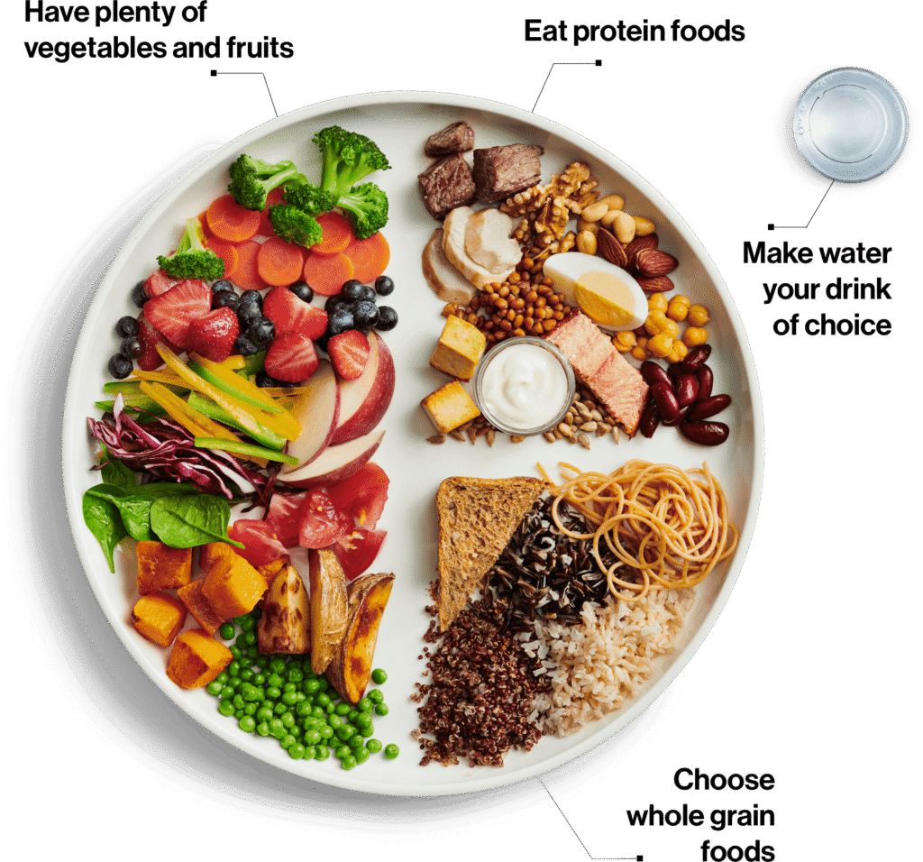 Try to fill half your plate with vegetables and fruits at every meal . This increases nutrition and keeps you full longer.