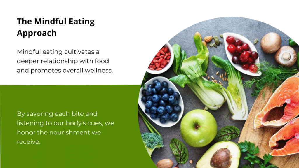 Mindful eating means paying attention to your food, eating slowly, and listening to your hunger cues . This reduces overeating and improves digestion.